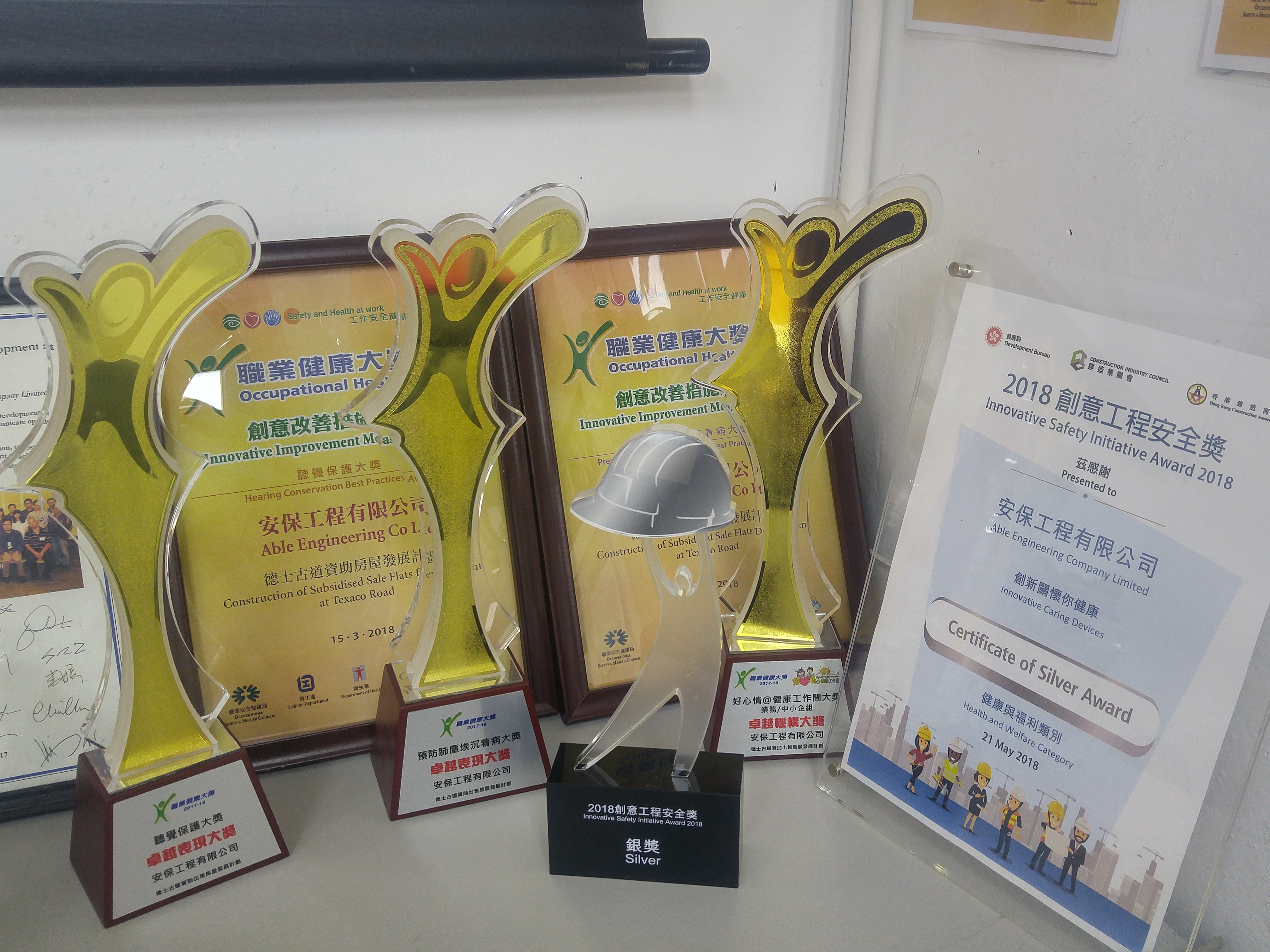 She was received the second runner-up in Safety Quiz 2017 Enterprises Final which is co-organized by Occupational Safety and Health Council and Labour Department with colleagues. Also, she join the Occupational Health Award 2017-18 with colleagues. Meanwhile, she becomes a trainer to site staff at all level regularly.