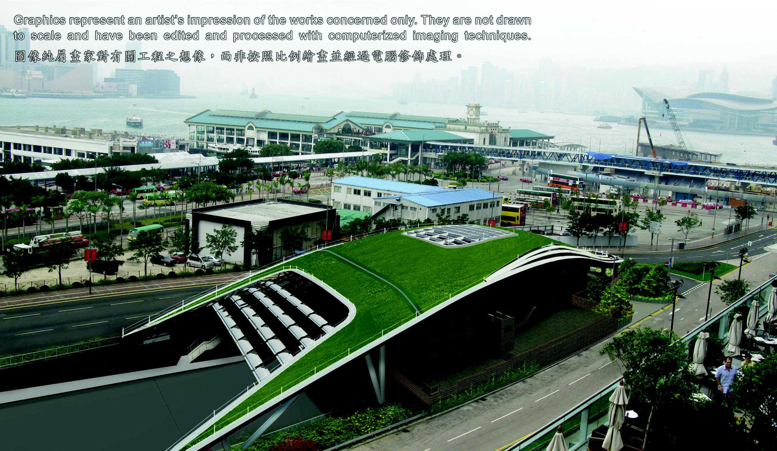 The architecturally designed West Ventilation Building (WVB), located at the Central Tunnel Portal, comprises an extensive green roof. This design provides not only all the benefit of a green roof but also aesthetically pleasing landscape allowing the WVB structure to blend-in smoothly with the vibrant harbourfront.