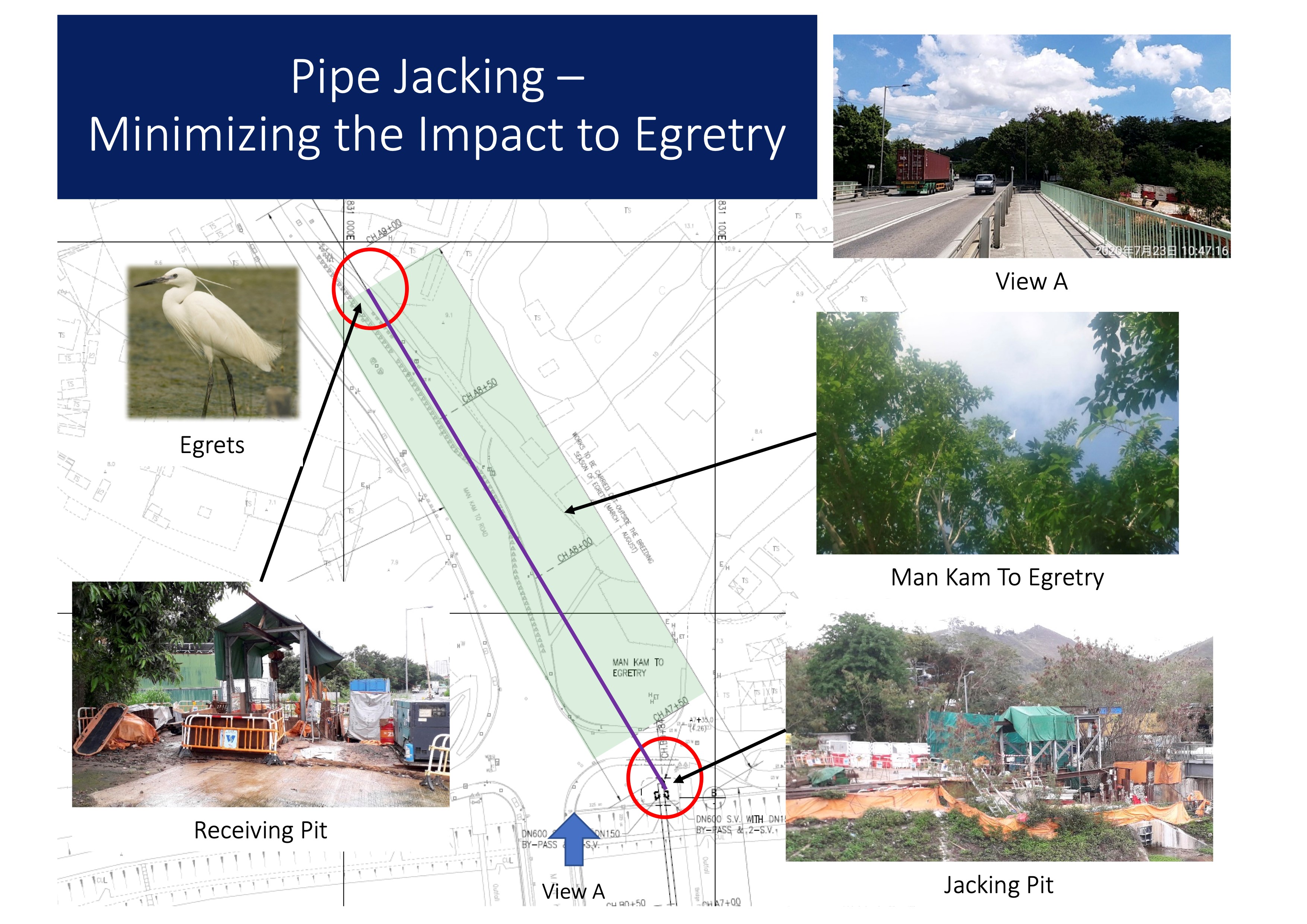 Adopting the trenchless method for laying the proposed water main underneath the Man Kam To Egretry, to minimise any potential impact on the egrets’ habitat.
