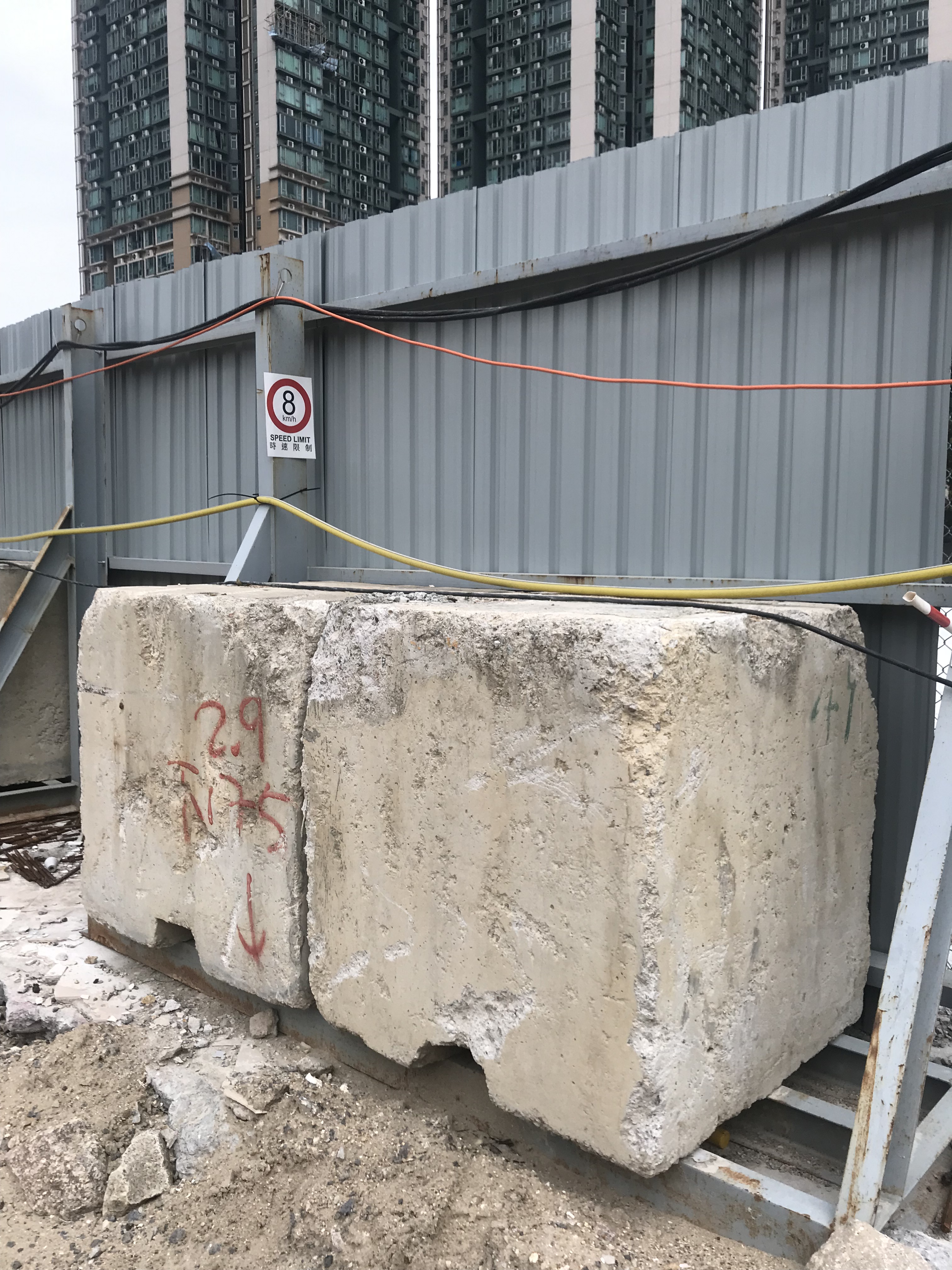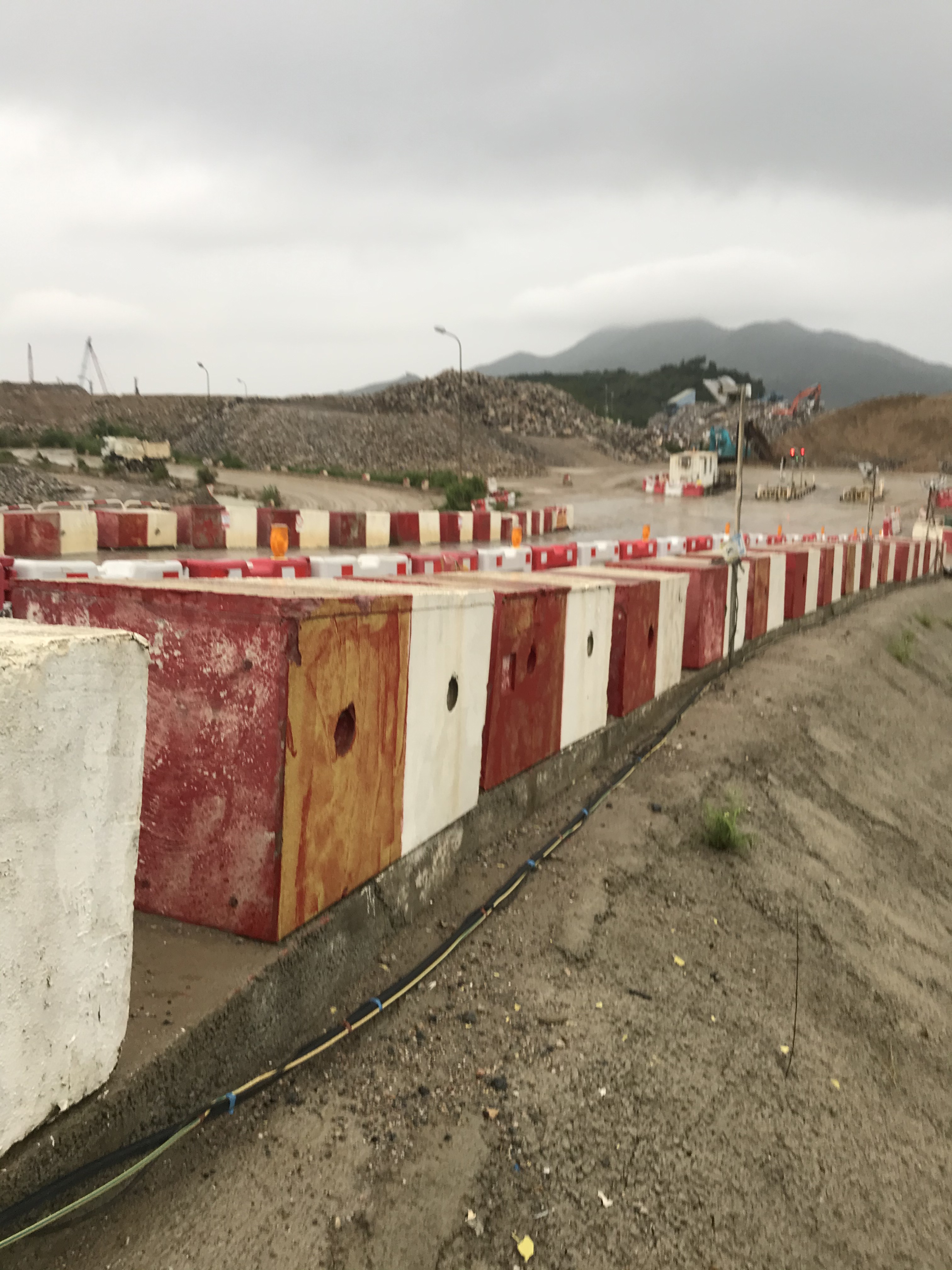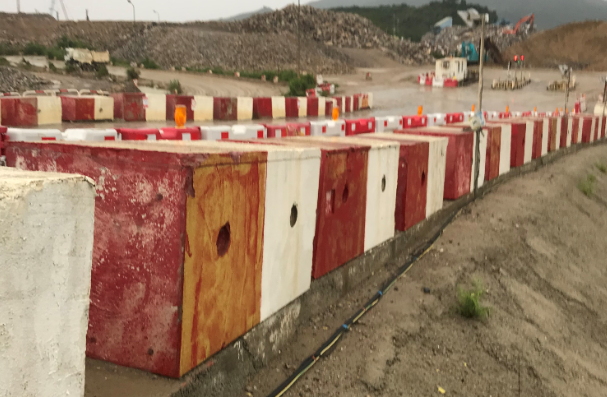 Lots of demarcation of haul road and pedestrian access are essential on the large reclaimed land. The use of second-hand concrete plates is environmentally friendly and reduces the construction time .