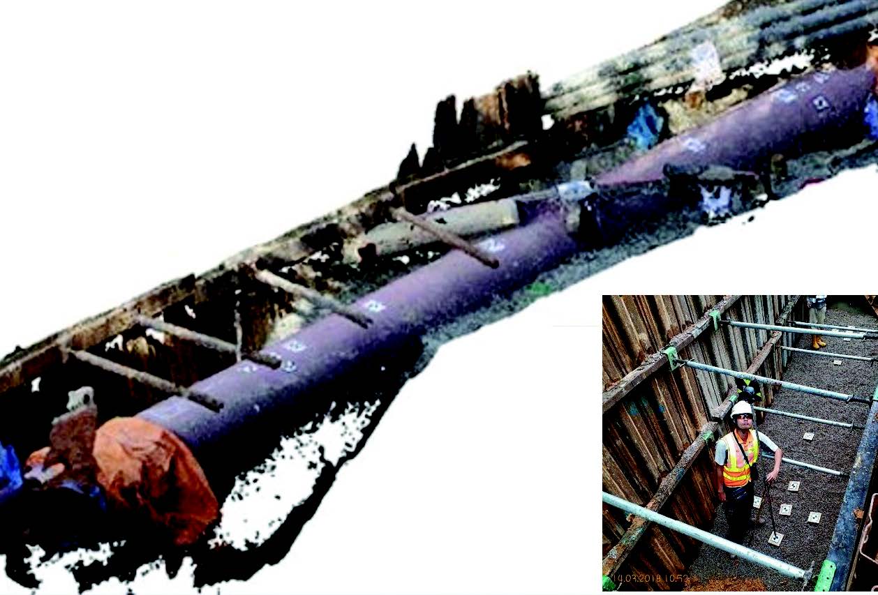 To ensure the quality of the point cloud, the survey team has to work in the trench for taking photos by closing range photogrammetry technique. The surveyed point cloud model quality can be accessed by the position accuracy and density of check points. It has been developed during this project to ensure the works quality.