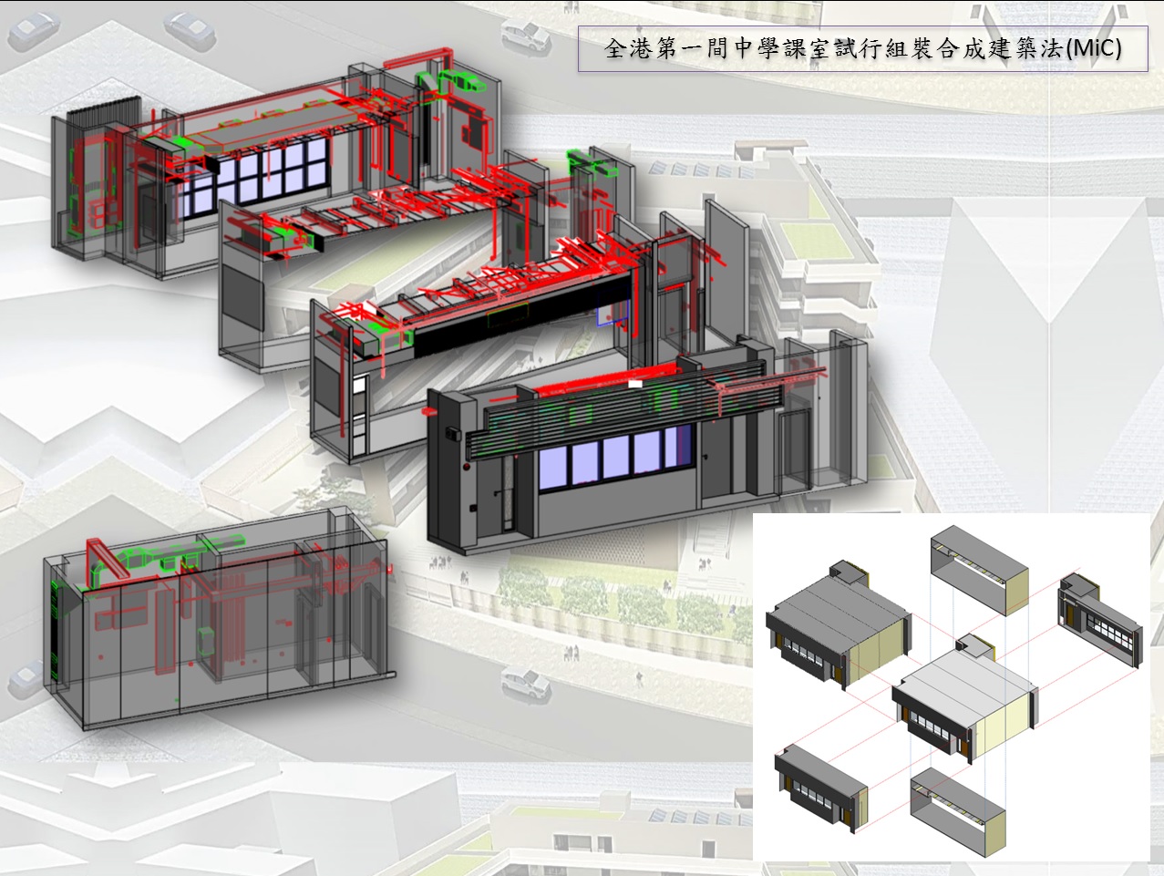 Incorporating the concept of “factory assembly followed by on-site installation”, the project team adopts MiC in constructing a classroom, which consists of five modules are manufactured in the prefabrication factory and transported to the site for installation. Thereby MiC greatly contributes to enhanced productivity, quality control and site safety and substantially reduces construction waste and environmental nuisance during construction.
