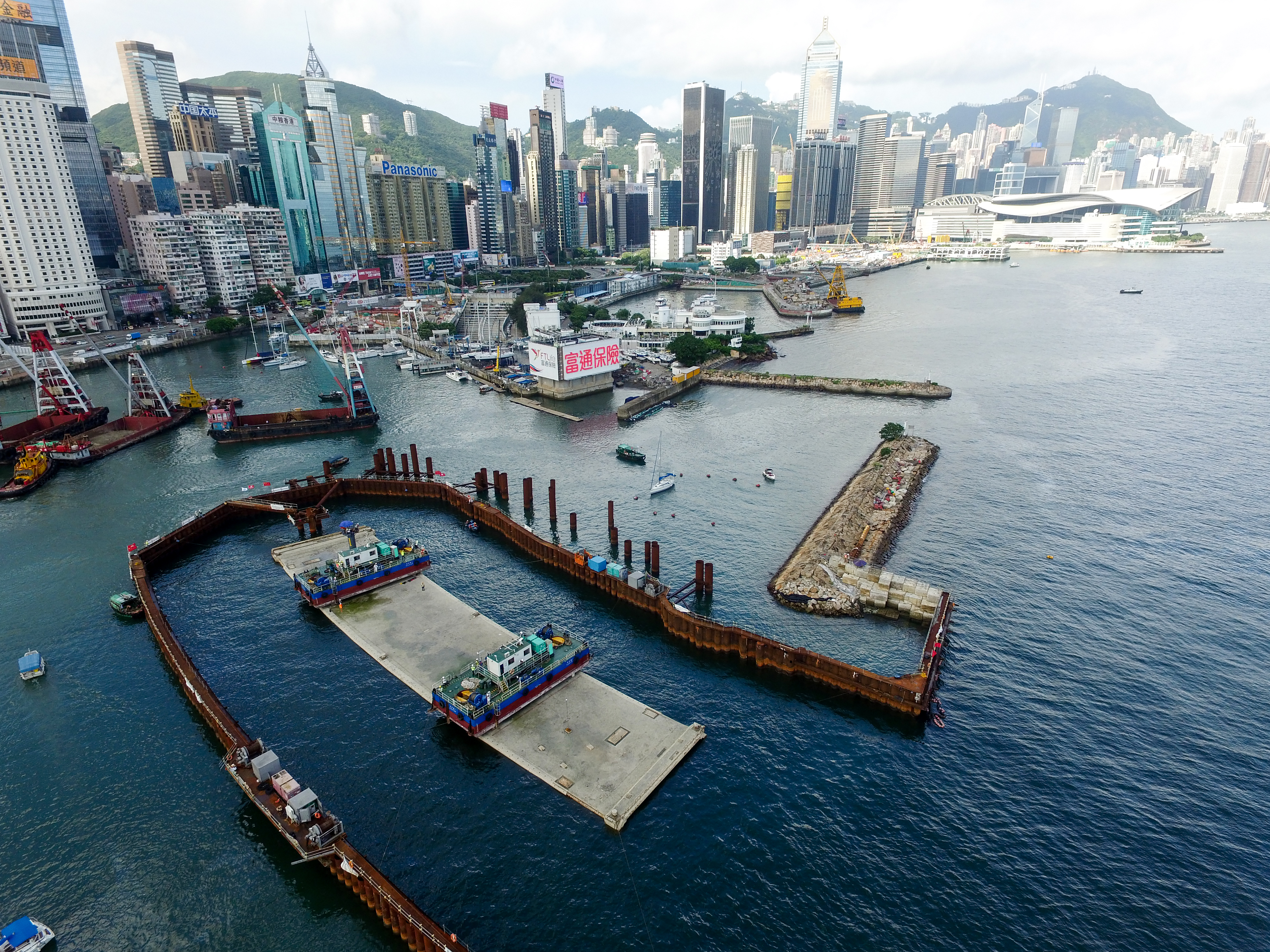 The project design extended the IMT sections into the CBTS with the installation of a temporary wave barrier by pipe piles. This change enabled approximately 2.2 hectares of temporary reclamation to be saved, still maintaining the wave barrier function of the breakwater during construction. This brought significant safety, programming and environmental benefits.